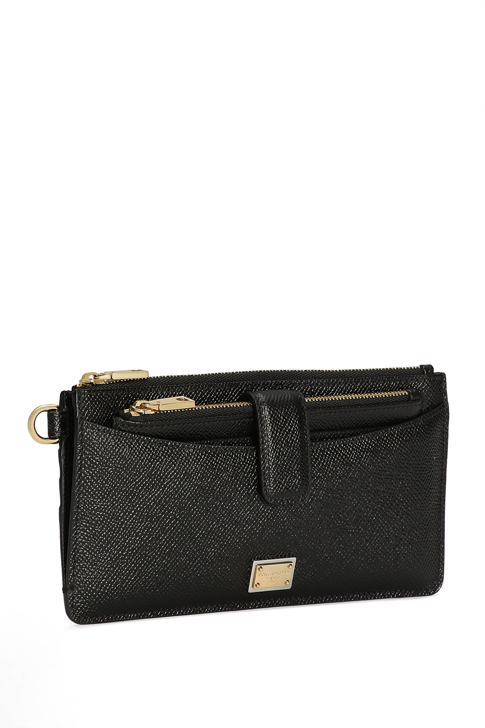Portacarte grande con zip in pelle di vitello con targhetta logata