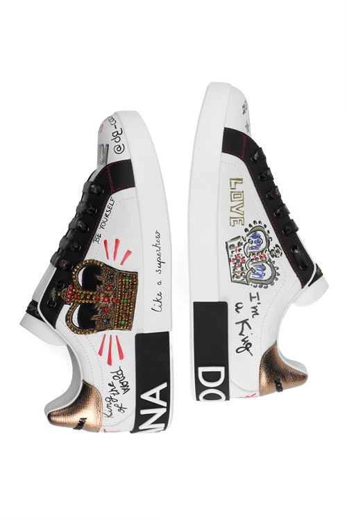 SNEAKER PORTOFINO IN VITELLO NAPPATO STAMPATO CON PATCH E RICAMI