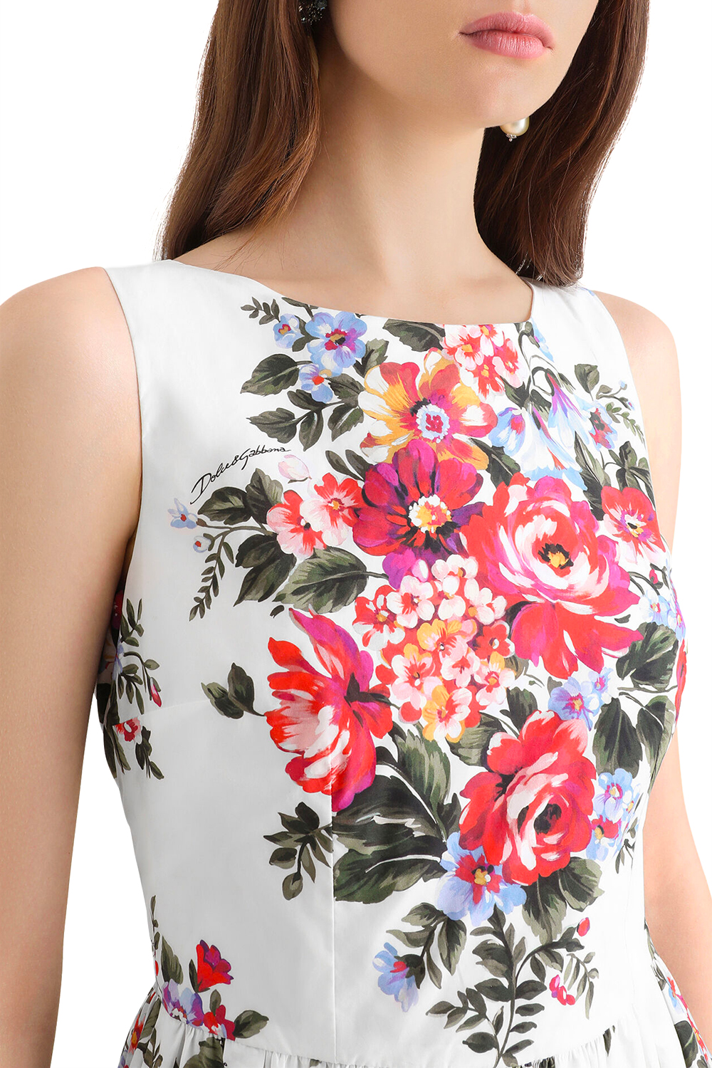 Abito in cotone stampa mazzo di fiori