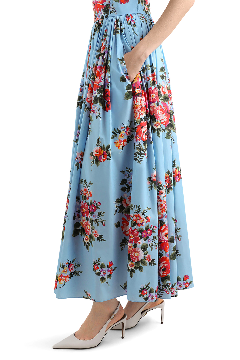 Abito in raso stampa bouquet rose