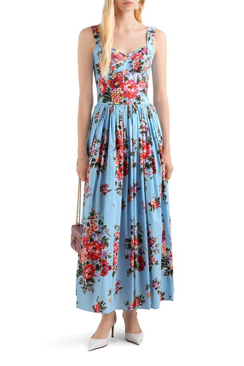 Abito in cotone stampa mazzo di fiori