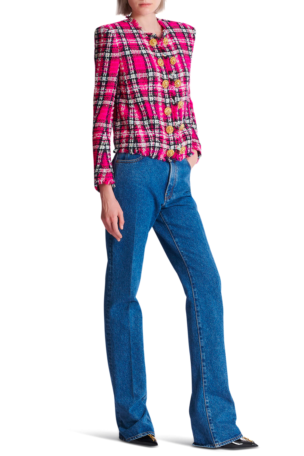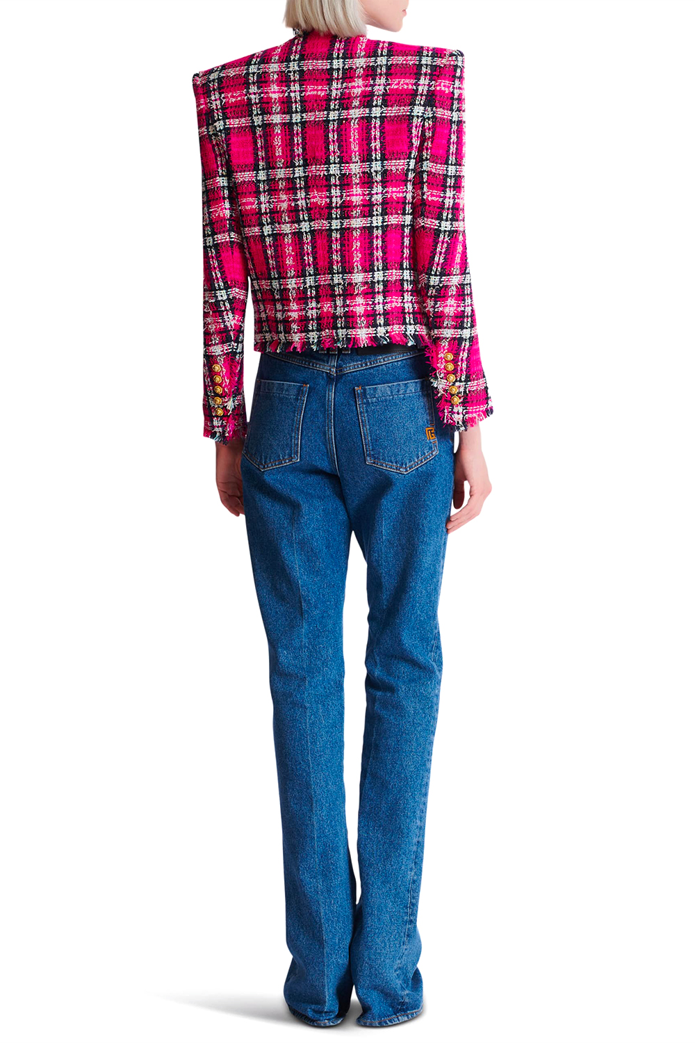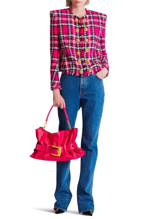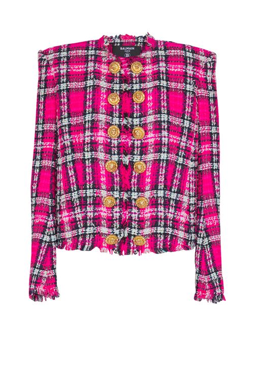 GIACCA SPENCER IN TWEED TARTAN CON PAILLETTES
